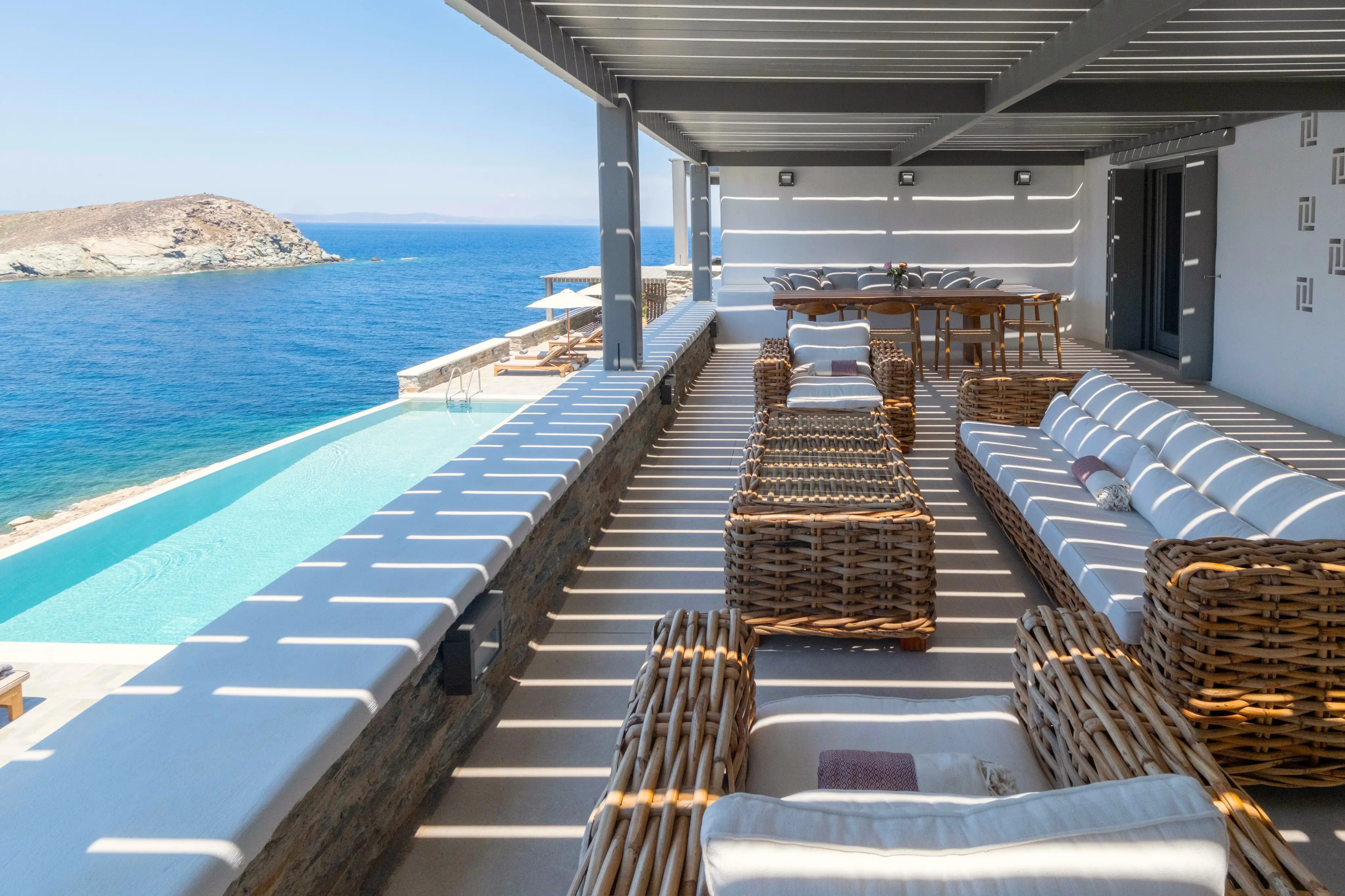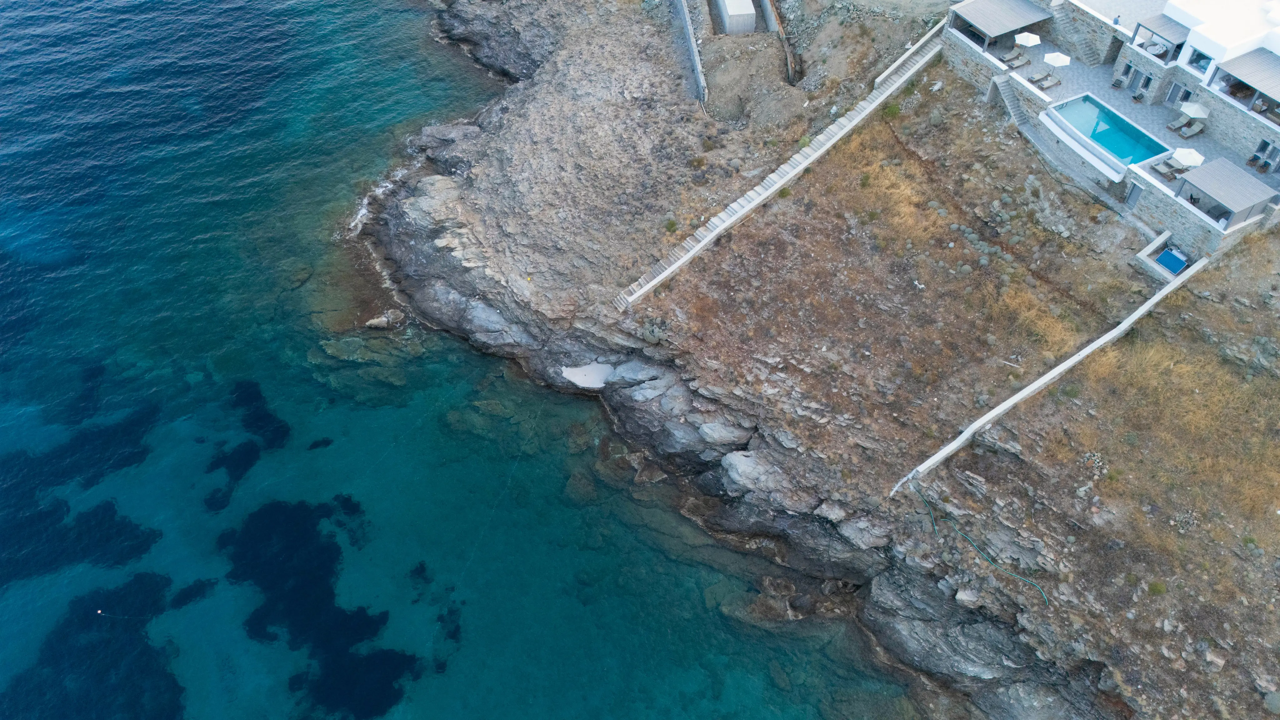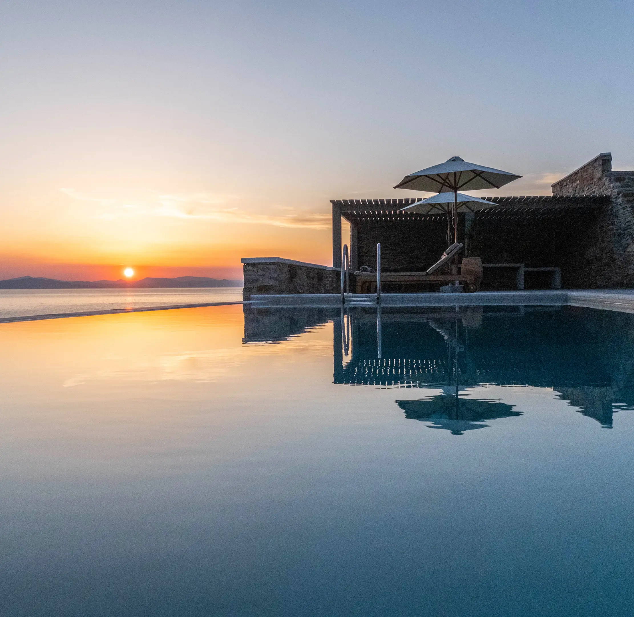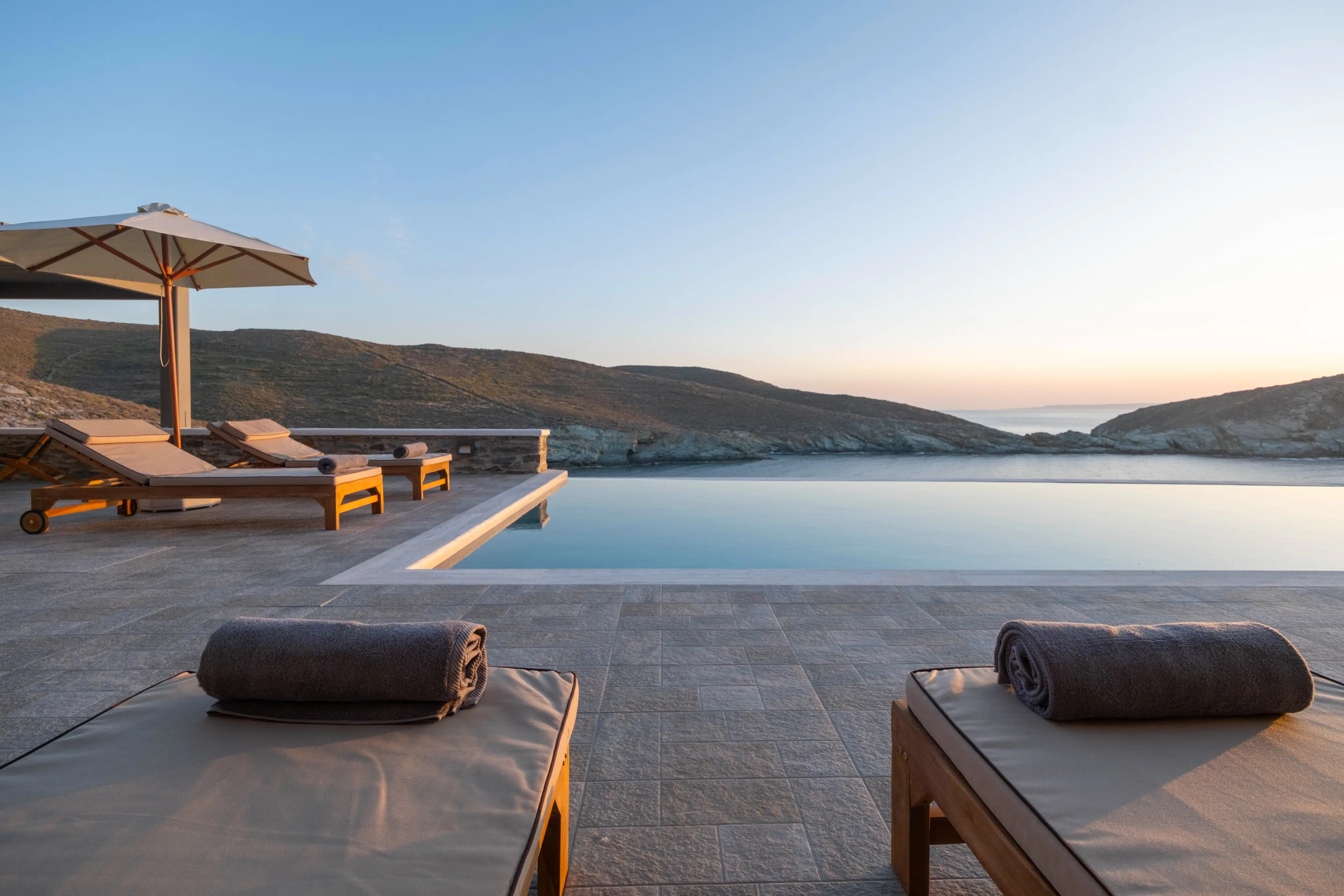 Carved into stone and open to the horizon, the infinity pool becomes a seamless extension of sea and sky. A space for stillness, immersion, and the quiet pleasure of light on water.