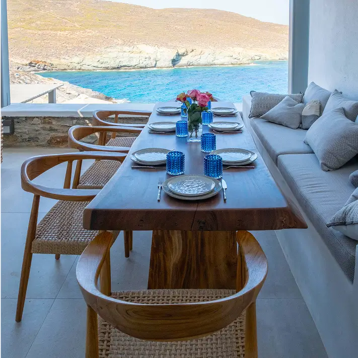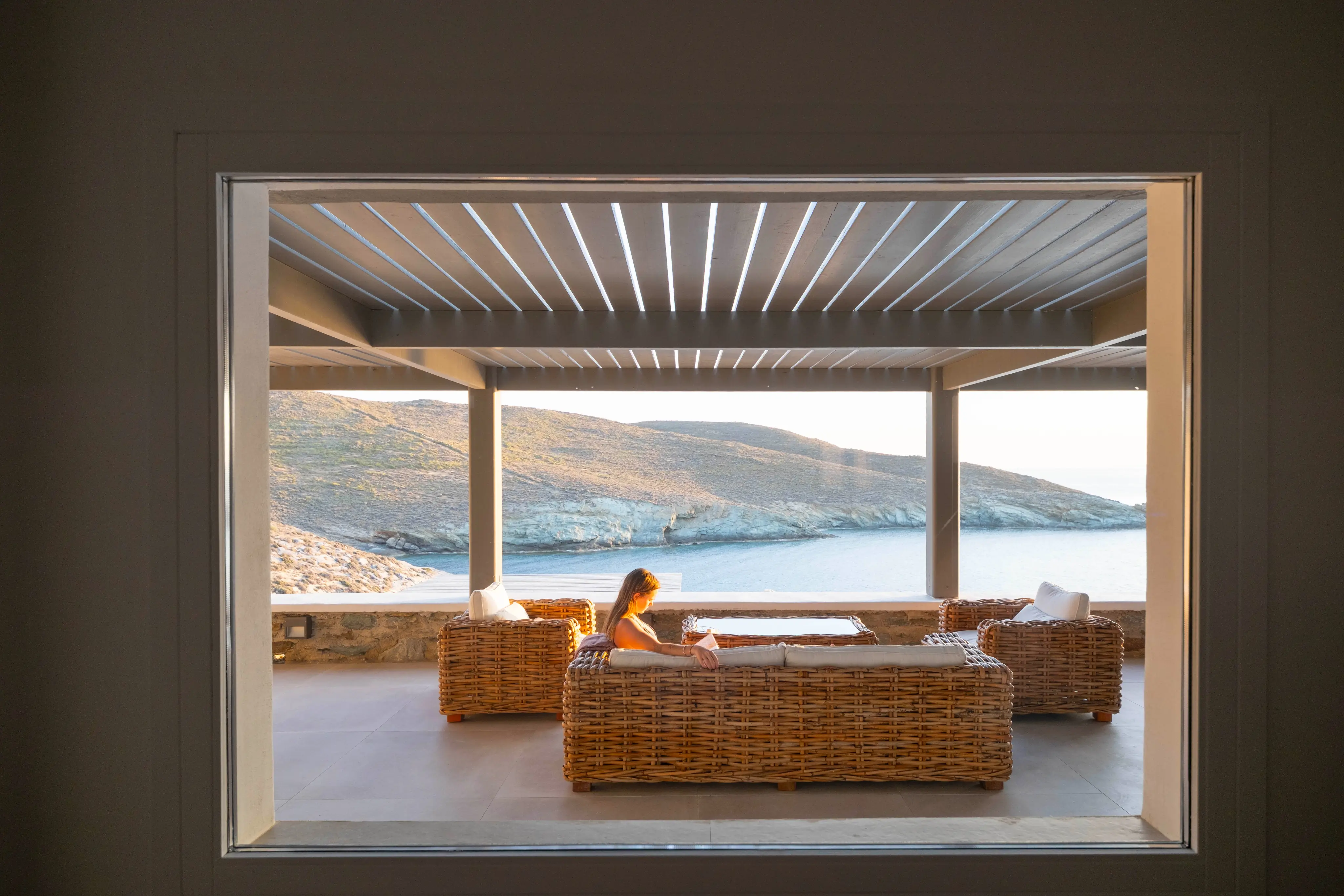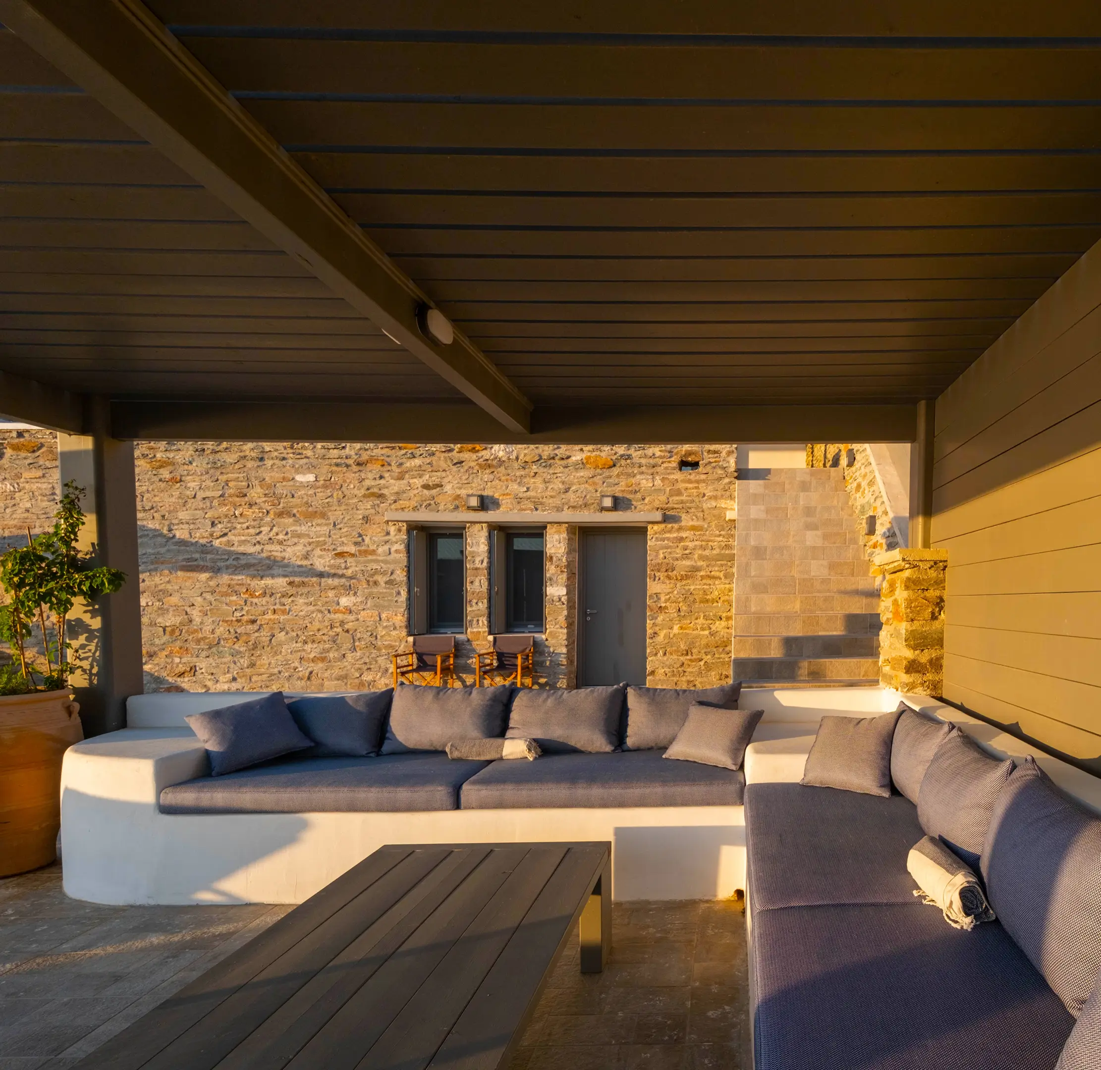 Framed by stone and breeze, the villa’s sea-facing verandas are made for open-air dining, gentle reflection, and slow afternoons. They connect inner stillness with the rhythm of the island.